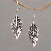 Sterling Silver Swirling Leaf Dangle Earrings from Bali 'Leaf Mystique' Item ID: 2669887194
