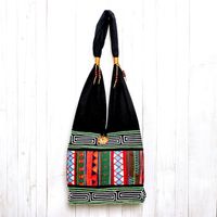 Thai Multicolored Cotton Shoulder Bag with Geometric Motif 'Ardent Thai' Item ID: 2669897594