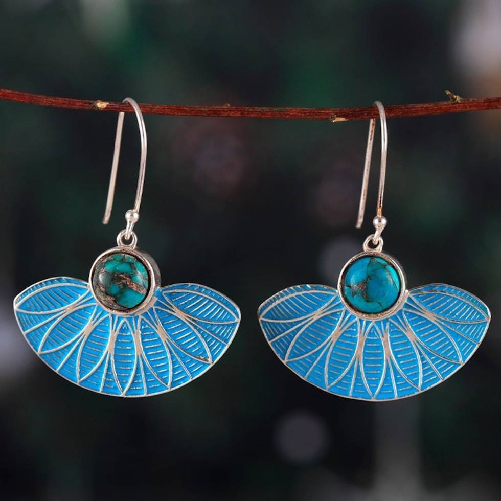 Painted Blue Dangle Earrings with Recon Turquoise Cabochons 'Blue Utopia' Item ID: 2671787034