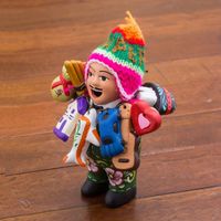 Painted Floral Ekeko Sculpture with Wool Cap from Peru 'Jolly Ekeko' Item ID: 2671691048