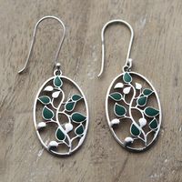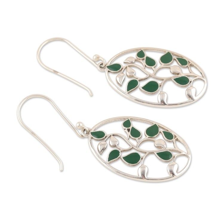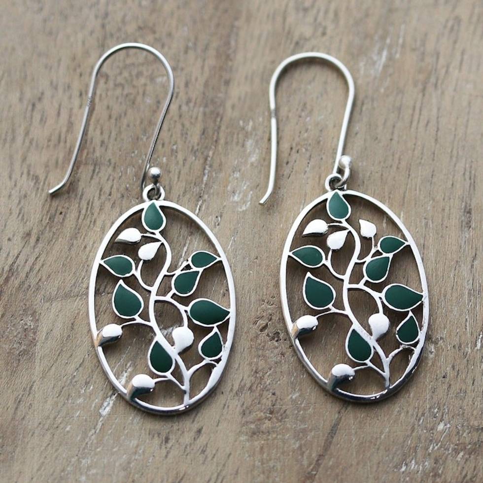 Painted Leafy Sterling Silver Dangle Earrings from India 'Leafy Glamour' Item ID: 2671787031