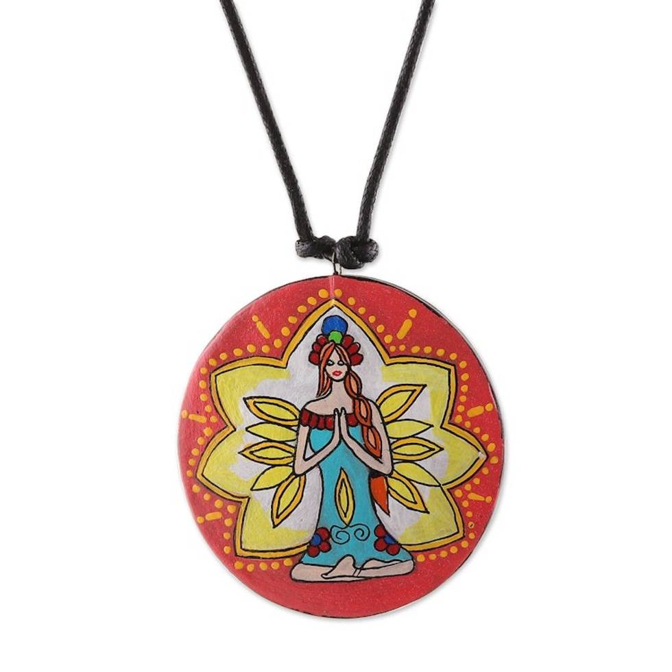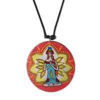 Painted Meditation-Themed Round Ceramic Pendant Necklace 'Meditative Maiden' Item ID: 2671783174