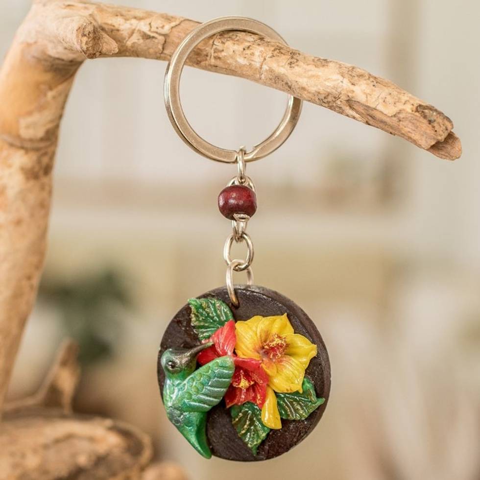 Painted Pinewood and Cold Porcelain Hummingbird Keychain 'The Little Hummingbird' Item ID: 2671770659