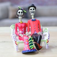 "Enjoying a peaceful Day of the Dead, this romantic Catrin couple-from the stunning Mexican lands-arrives to add a harmonious touch to your interiors. Master artisan Jorge Escamilla handcrafts this adorable sculpture, drawing inspiration from traditional themes that allow for a classic aura. The artisan also finishes the piece with hand-painted details in vibrant and sweet hues."