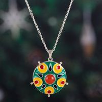 Painted Sterling Silver Pendant Necklace with Carnelian Gem 'Celebration in Jaipur' Item ID: 2671786818