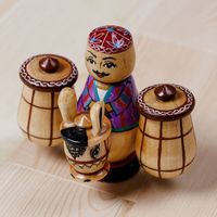 Painted Traditional Wood Figurine of Tajik Merchant Donkey 'Tajik Vendor' Item ID: 2669935094