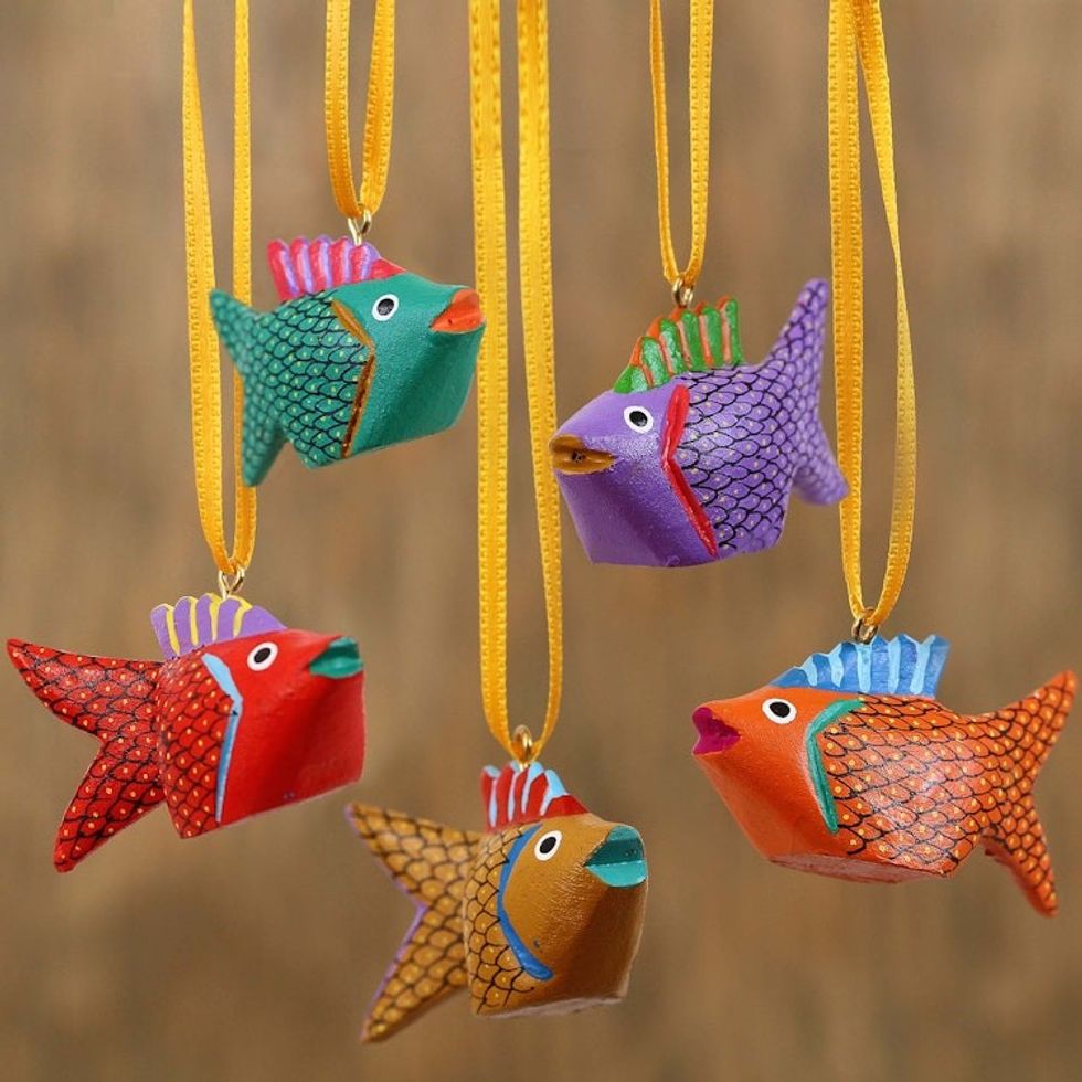 Painted Wood Alebrije Fish Ornaments Set of 5 from Mexico 'Sweet Fish' Item ID: 2669932033