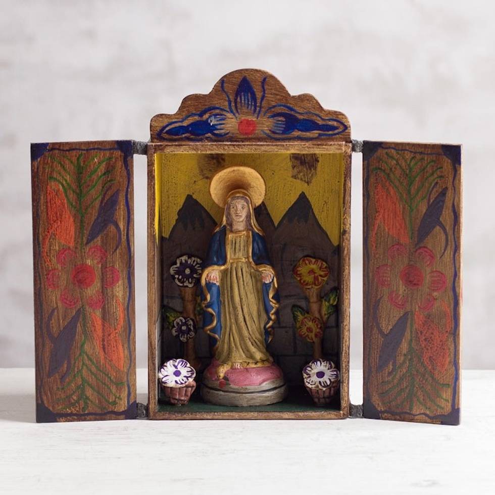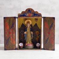 I bought the first one for myself as a confirmation gift because one of our Deacons, in a class for new Catholics, said every Catholic home must have a few things - one of them was a statue or photo or painting, etc., of our Blessed Mother Mary. I bought the second for a woman in my Bible study, who is from Peru and just moved into a new home. I bought the third one for my sister, because when she saw a photo of mine, she fell in love with it - not for the religious appeal, but from a folk art perspective - and after looking at many online, I can't agree more. I watched the video of how the artisan makes the retablo and it added even greater value to it. I simply love them. I love the scene behind Mary - the high mountains, and the flowers, in a wooden box with doors. I mounted mine on a wall in my home office and see it from where I sit. I'm buying the next one as a thank you gift for a close friend who I will be visiting in a few weeks.