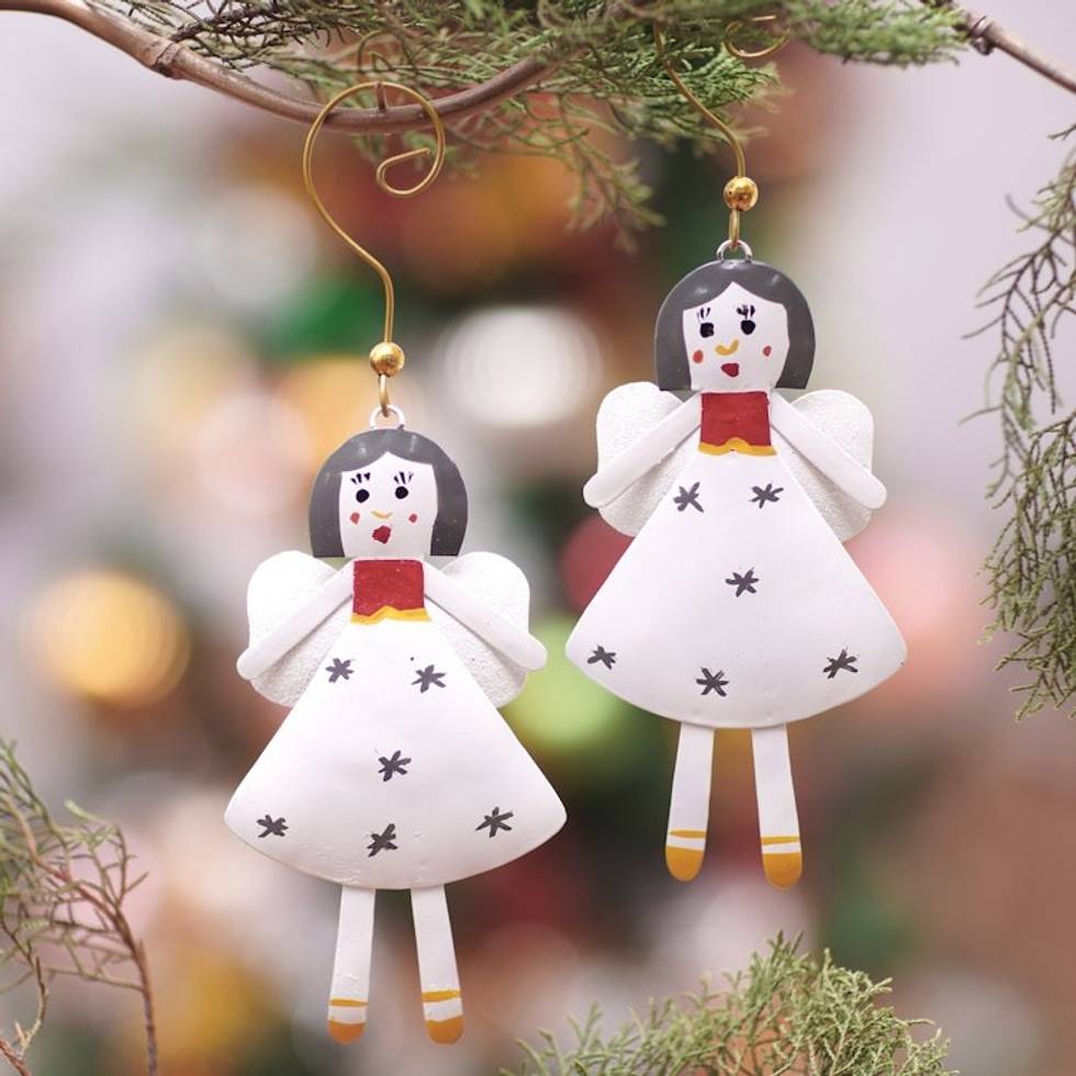 Pair of Angels Iron Christmas Ornaments Hand-Painted in Bali 'Pretty Snow Angels' Item ID: 2671763399