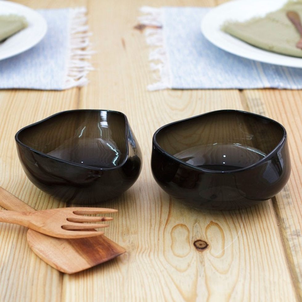 Pair of Black Handblown Glass Dessert Bowls from Mexico 'Dark Flavors' Item ID: 2671807393
