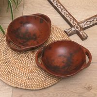 Pair of Brown Ceramic Serving Bowls Crafted in Indonesia 'Brown Feast' Item ID: 2671763030