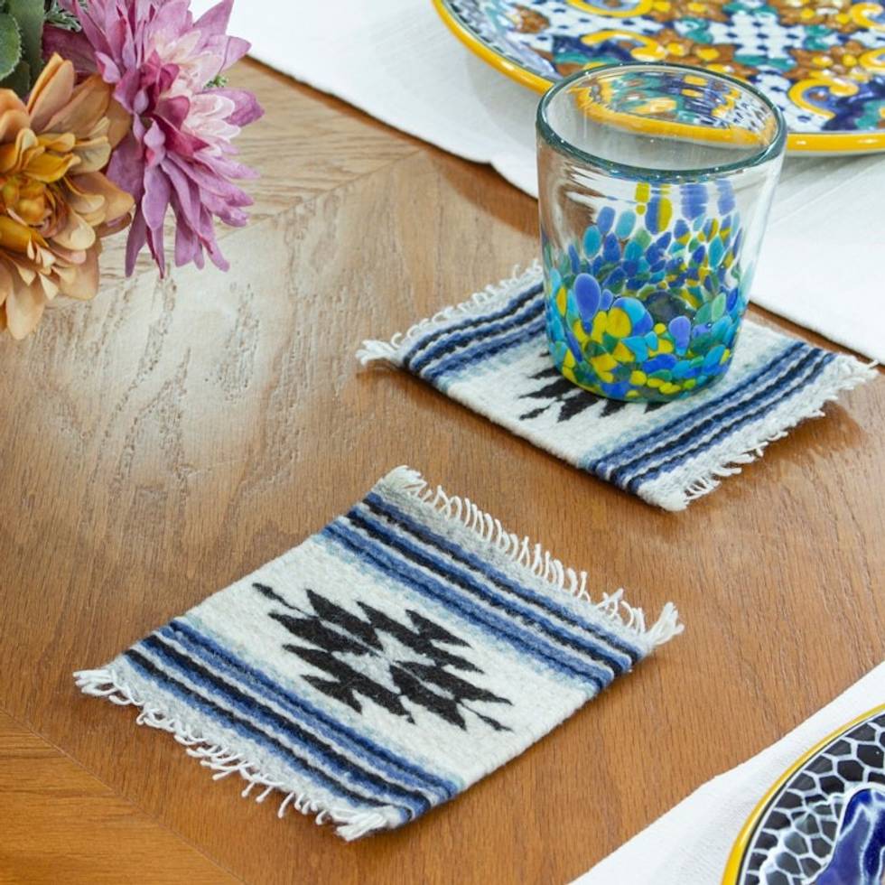 Pair of Coasters Hand-Woven from Wool with Mexican Motifs 'Blue Mexico' Item ID: 2671639148