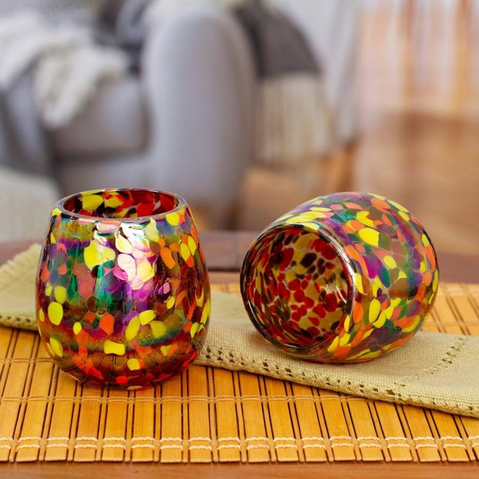 Pair of Colorful Stemless Wine Glasses Handblown in Mexico 'Confetti Pop' Item ID: 2671640386