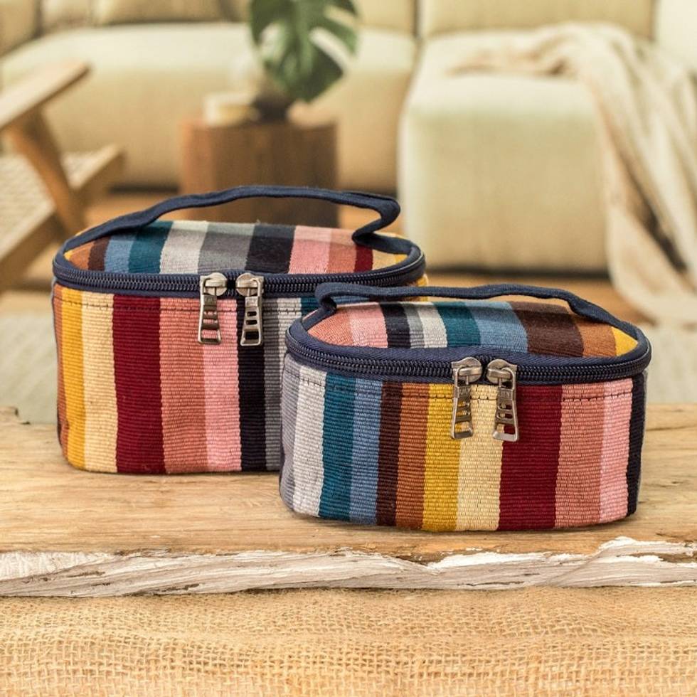 Pair of Colorful Striped Handwoven Cotton Cosmetic Bags 'Earthy Style' Item ID: 2671626106