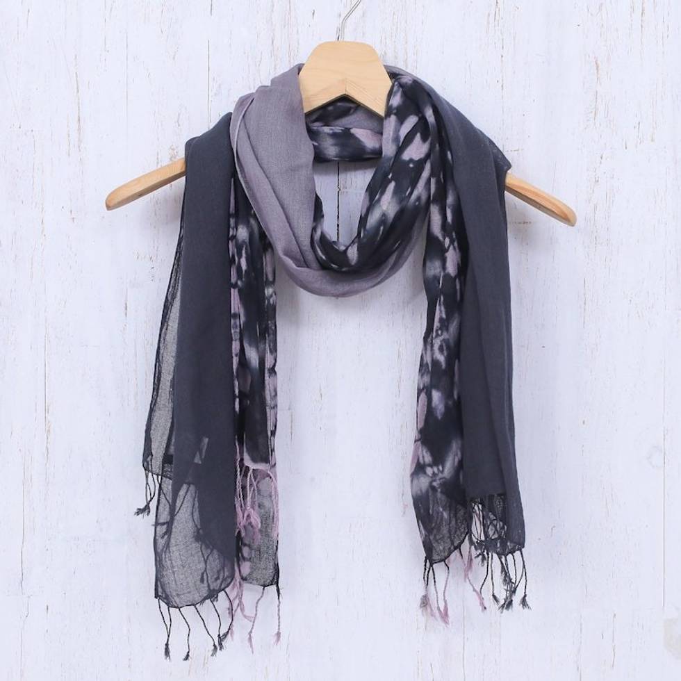 Pair of Cotton Tie-Dye Scarves in Shades of Grey 'Galaxy of Love' Item ID: 2669930316