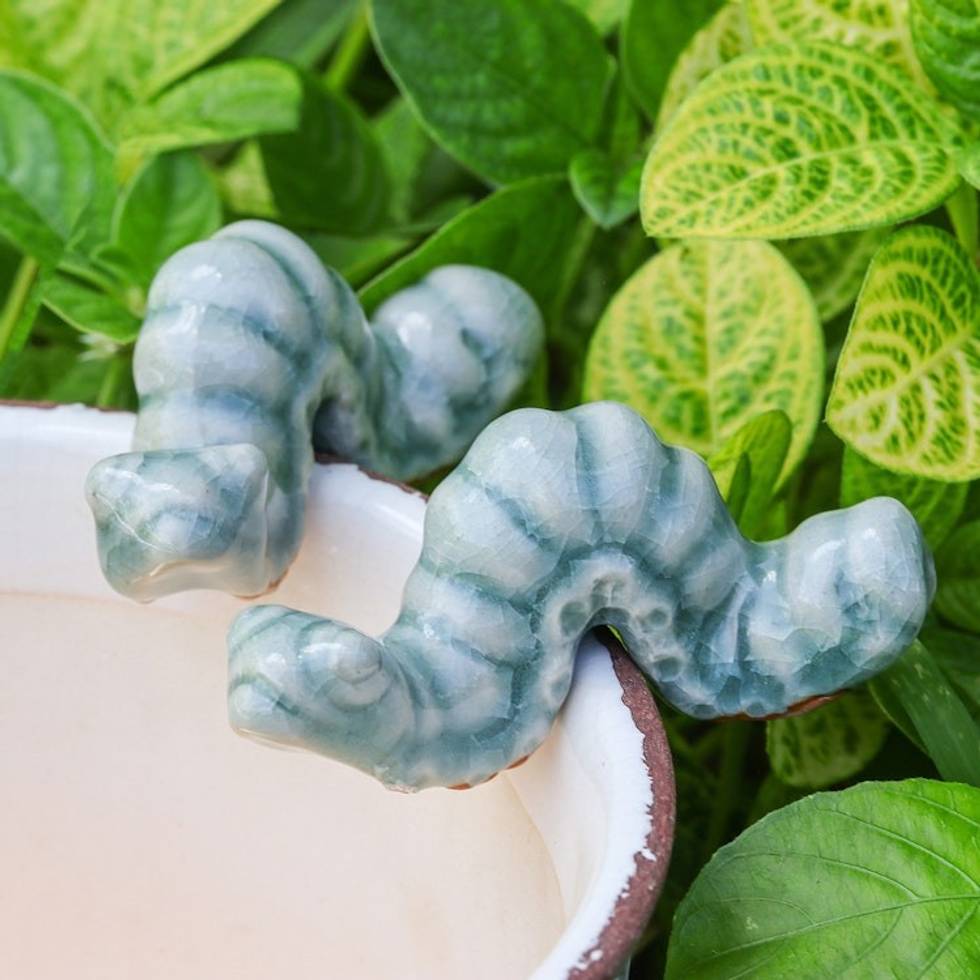 Pair of Crackled Celadon Ceramic Worm Figurines in Blue 'Serene Wiggles' Item ID: 2671796812