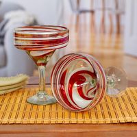 Pair of Eco-Friendly Handblown Margarita Glasses from Mexico 'Sophisticated Enchantment' Item ID: 2669897945