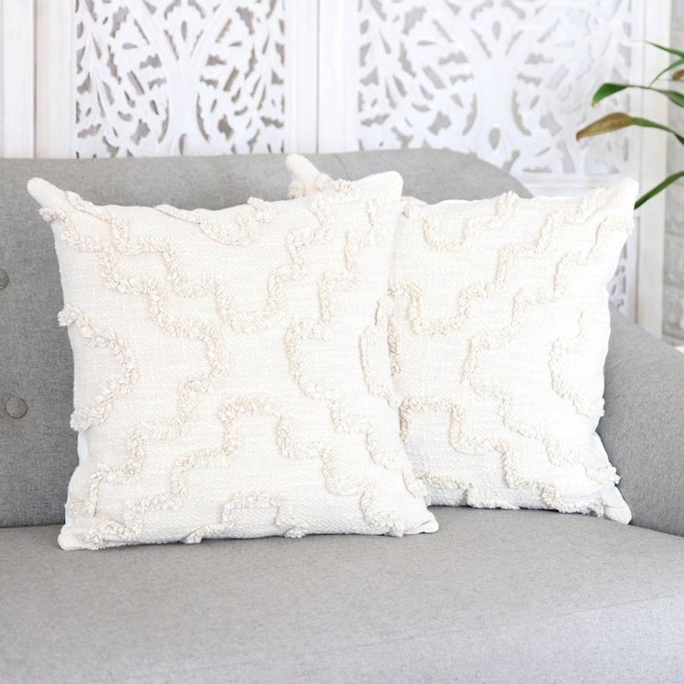 Pair of Ecru Cotton Cushion Covers with Embroidered Details 'Ecru Tunnels' Item ID: 2669944296