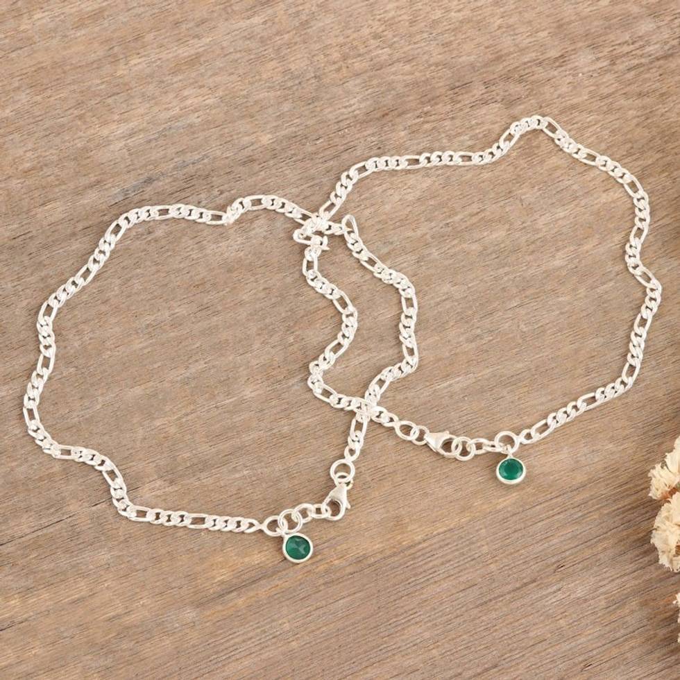 Pair of Green Onyx Sterling Silver Anklets from India 'Green Nobility' Item ID: 2669924147