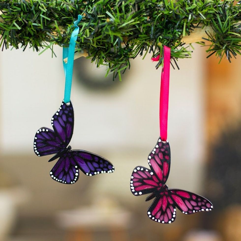 Pair of Hand-Painted Wood Butterfly Ornaments with Ribbons 'Monarchs of Hope' Item ID: 2669897921