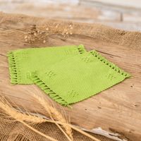 Pair of Hand-Woven Cotton Coasters in Green with Fringes 'Lemony Lime' Item ID: 2671769362
