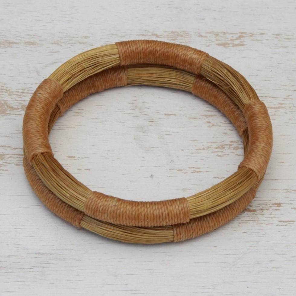 Pair of Handcrafted Golden Grass Bangle Bracelets 'Jalapo Equilibrium' Item ID: 2669935344