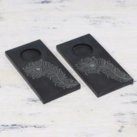 Pair of Handcrafted Soapstone Tealight Holders from India 'Peacock Flame'' Item ID: 2671793834