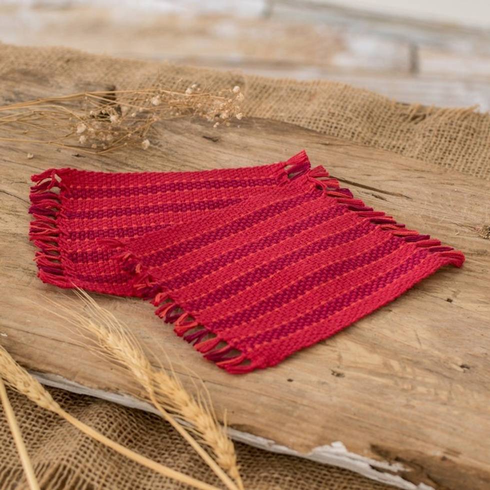 Pair of Handwoven Striped Cardinal Red Cotton Coasters 'Red Fruits' Item ID: 2671770640