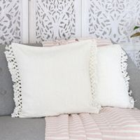 Pair of Ivory Cotton Cushion Covers with Tassels from India 'Ivory Passion' Item ID: 2669955545