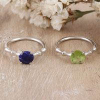 Pair of Lapis Lazuli and Peridot Solitaire Rings from India 'Luminous Alliance' Item ID: 2671655680