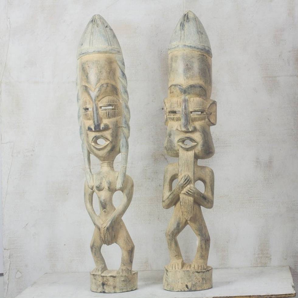 Pair of Male and Female Handmade Wood Statuettes from Ghana 'Awarefoo' Item ID: 2671803564