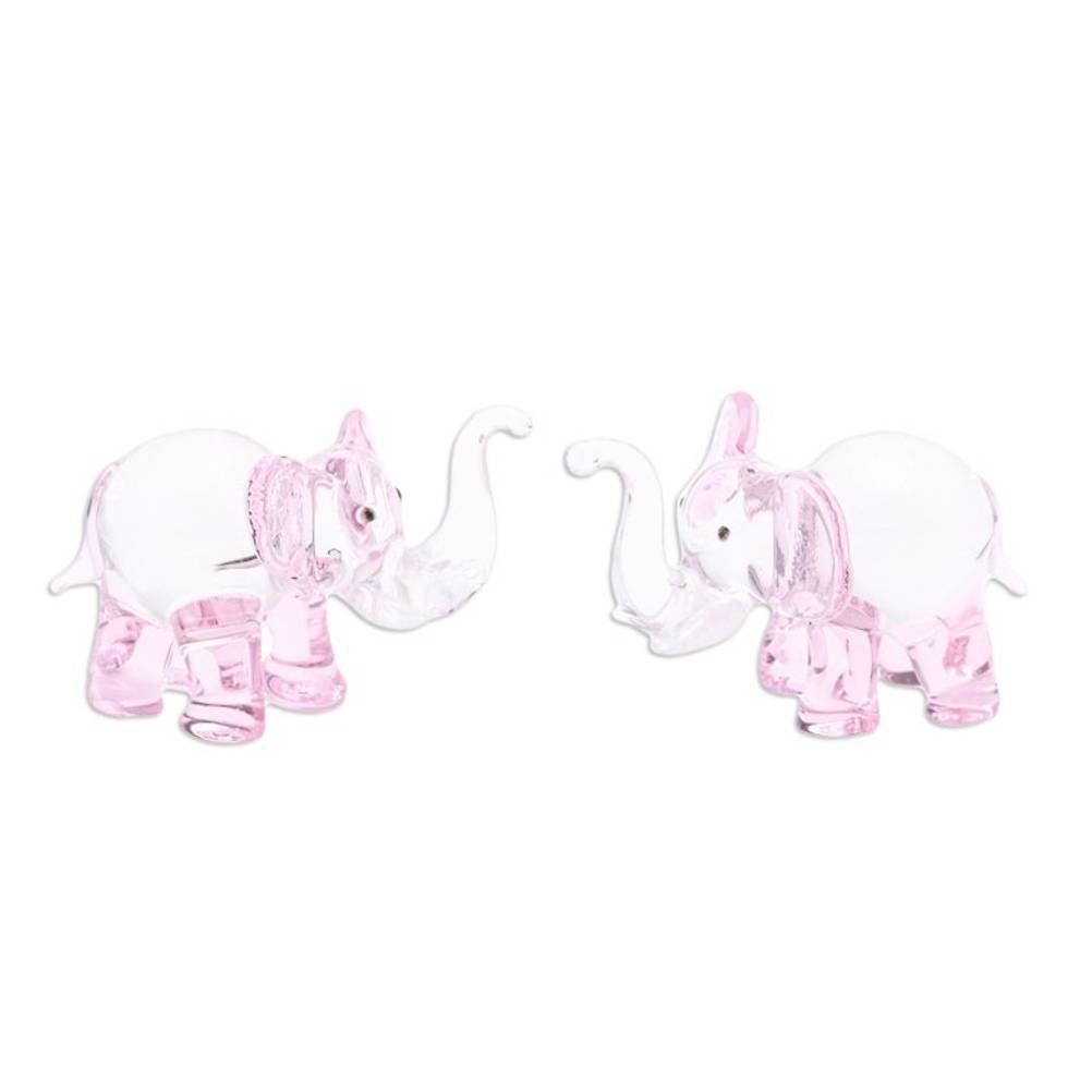 Pair of Pink-Toned Handblown Glass Elephant Figurines 'The Pink Giants' Item ID: 2671798032