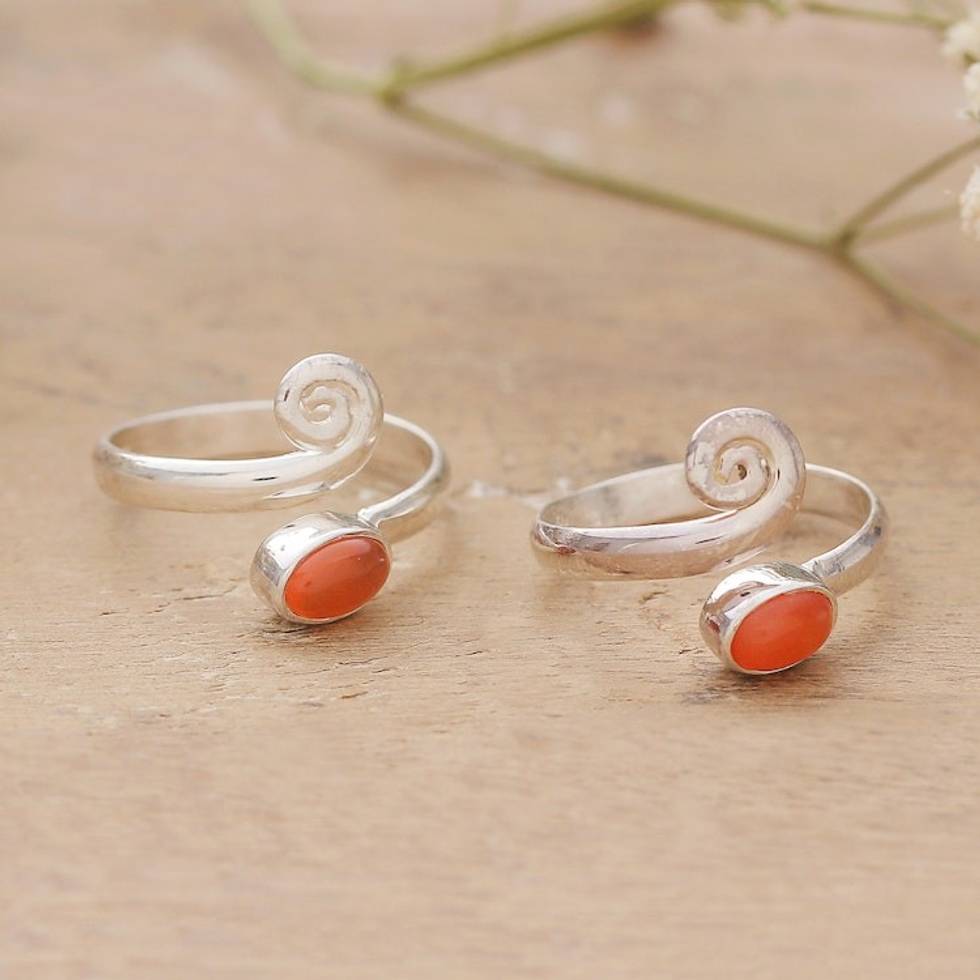 Pair of Polished Sterling Silver and Carnelian Toe Rings 'Sunset Curls' Item ID: 2671781167