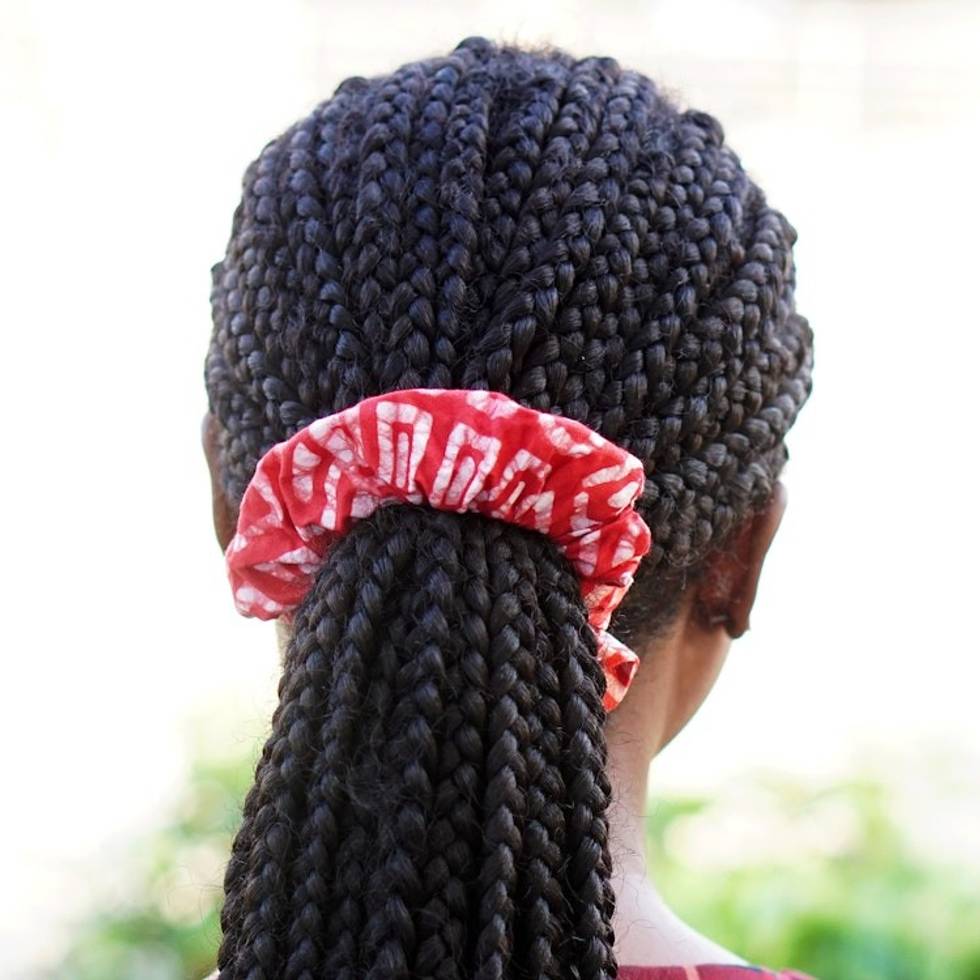 Pair of Red and White Patterned Cotton Scrunchies from Ghana 'Thankful Crimson' Item ID: 2671804071