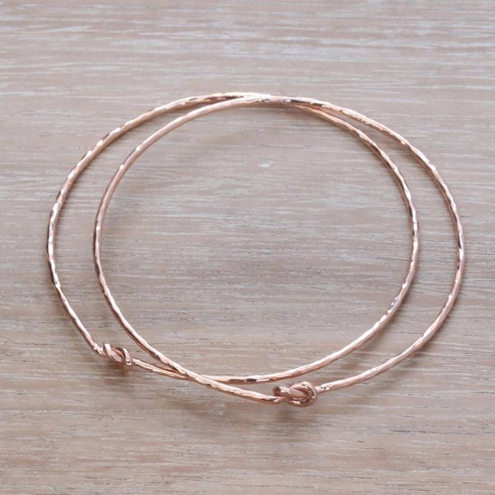 Pair of Rose Gold Plated Sterling Silver Bangle Bracelets 'Knotted Gold' Item ID: 2671736830