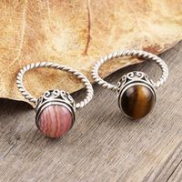 Pair of Silver Rings with Rhodochrosite and Tiger's Eye 'Hearts in Harmony' Item ID: 2669925421