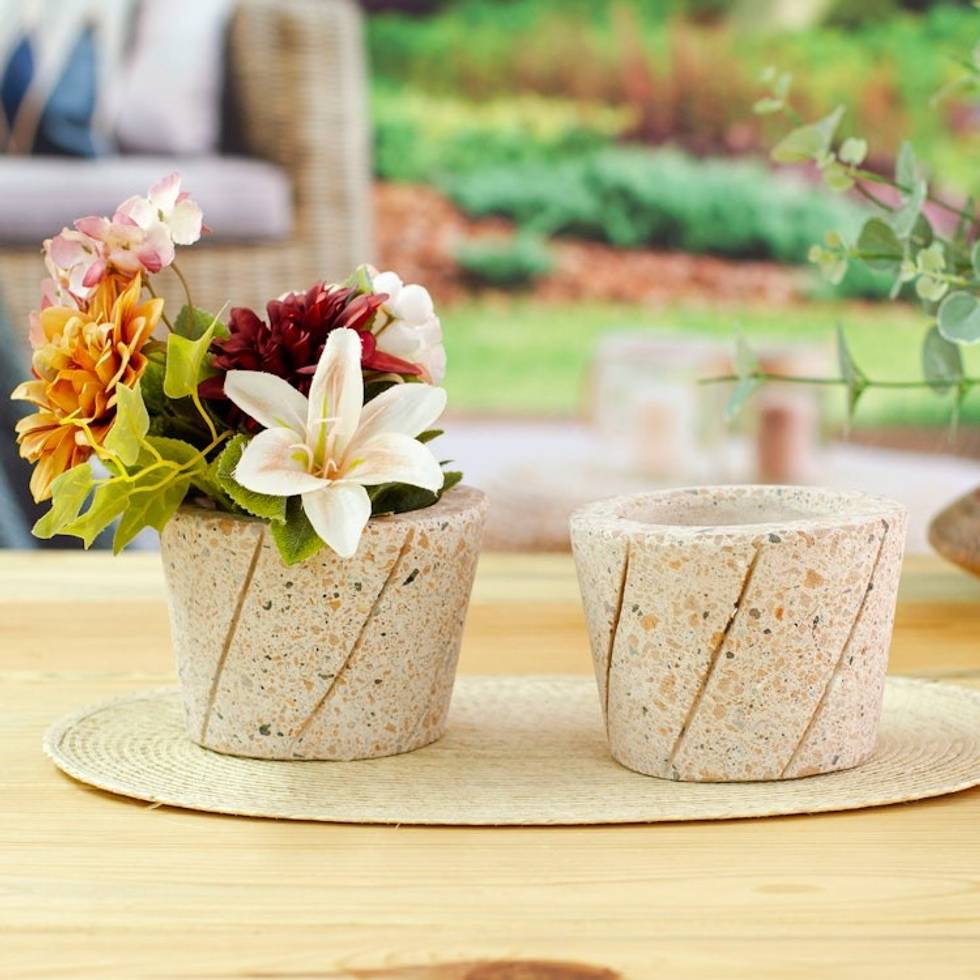 Pair of Spiral Pattern Reclaimed Stone Flower Pots 'Verdant Spirals' Item ID: 2671807976