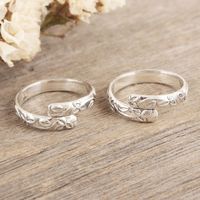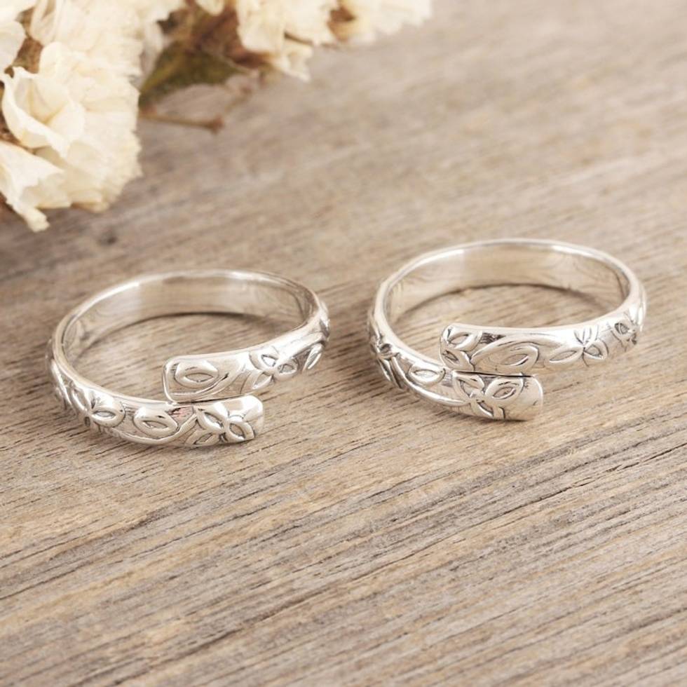 Pair of Sterling Silver Toe Rings with Floral Pattern 'Blooming Hug' Item ID: 2671787021