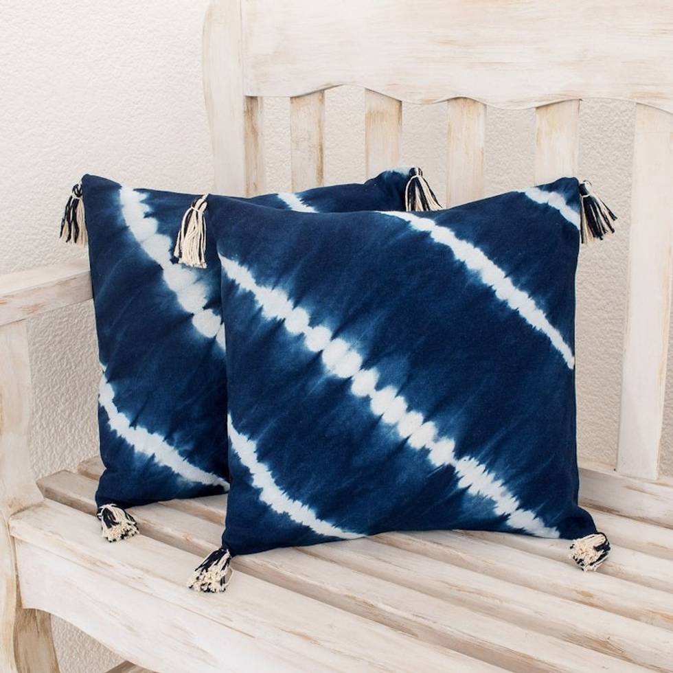 Pair of Tie-Dyed Indigo and White Cotton Cushion Covers 'Towards the Sea' Item ID: 2671769292