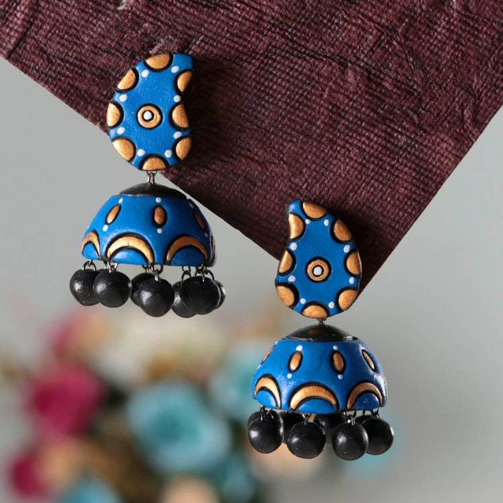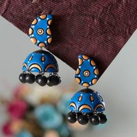 "Terracotta jewelry is crafted with clay which is procured from the river bed. After the piece is ready, it is baked in the oven and then hand-painted with vibrant colors and finally varnished with toxic-free lacquer.
