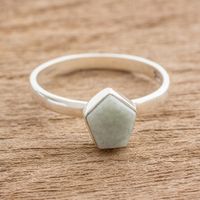 Pale Green Jade Pentagon and Sterling Silver Cocktail Ring 'Striking in Pale Green' Item ID: 2671777494