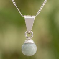 Pale Green Jade Silver Pendant Necklace from Guatemala 'Mayan Moon' Item ID: 2671779382