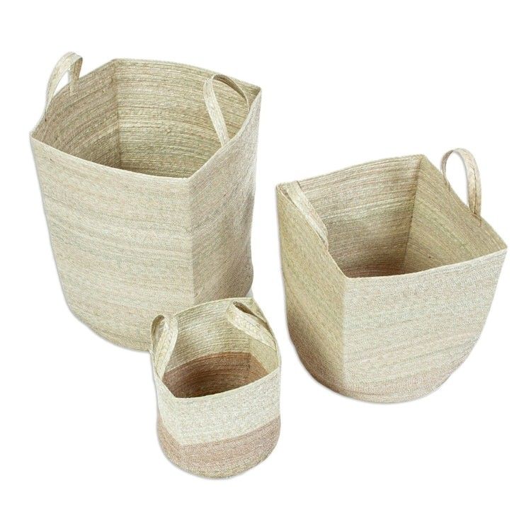 Palm Frond Fiber Squared Basket Home Accents Set of 3 'Mesoamerican Totes' Item ID: 2671808448