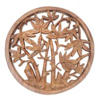 Palm-Themed Relief Panel Hand-Carved from Wood in Bali 'Palm Vibes' Item ID: 2671763220