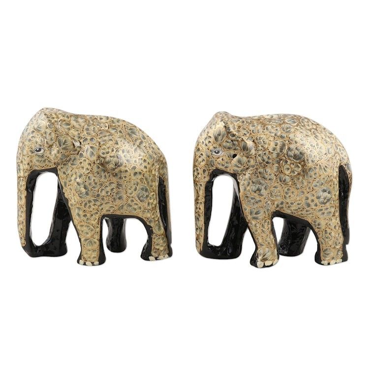 Papier Mache and Wood Elephant Statuettes Pair 'Bond of Friendship in Grey' Item ID: 2671787327