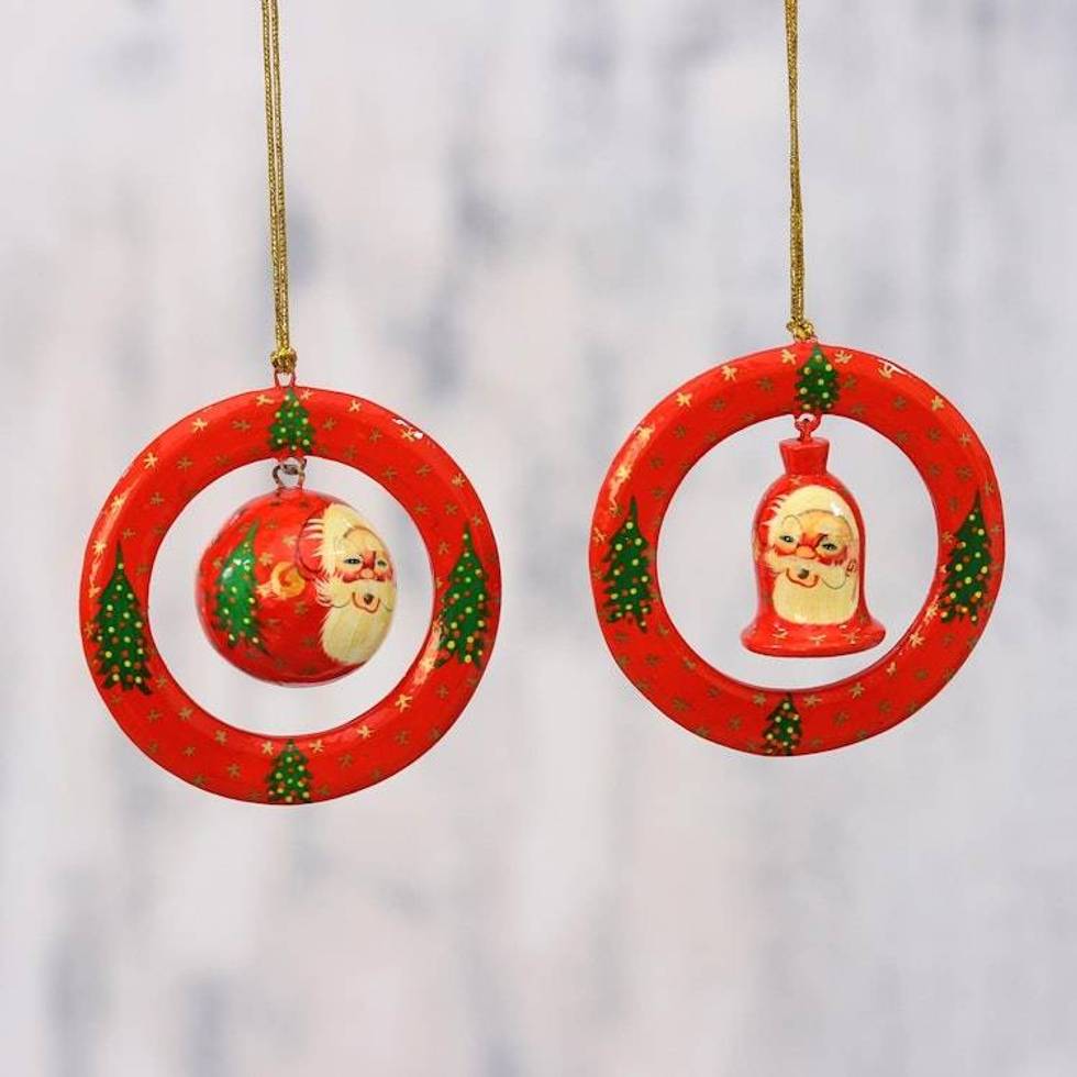 Papier Mache Christmas Ornaments Pair from India 'Christmas Rings' Item ID: 2676665642