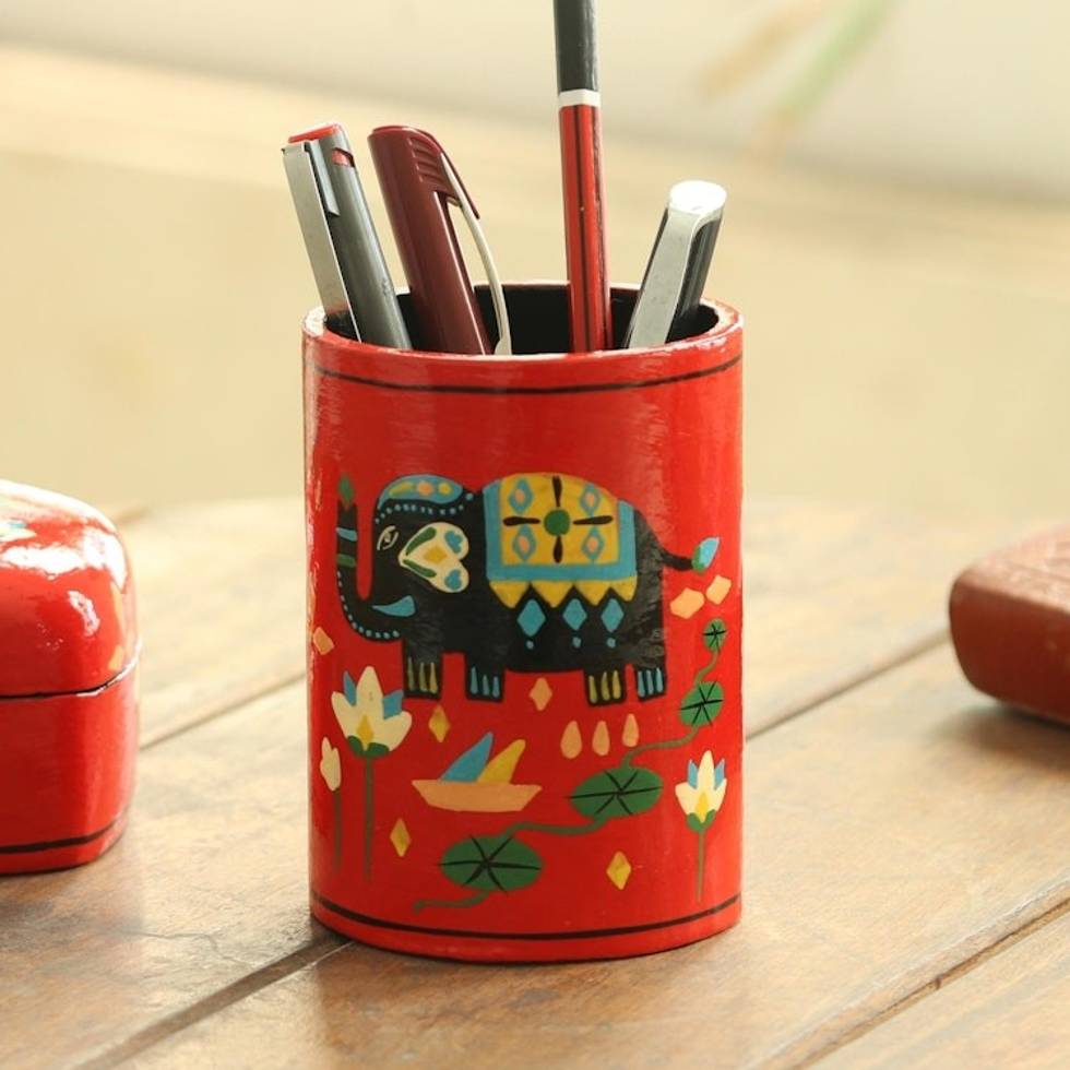 Papier Mache Elephant-Motif Pen Holder 'Tale of the River' Item ID: 2671788688