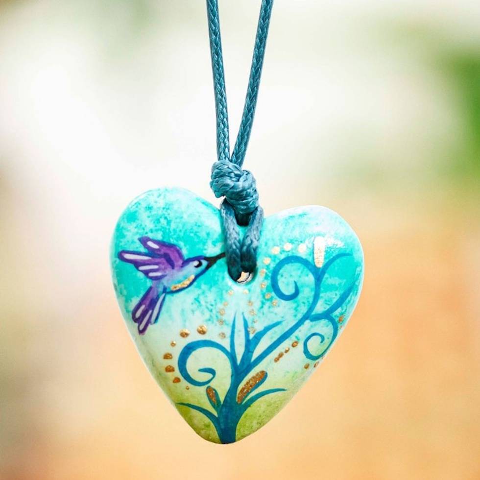 Papier Mache Hummingbird Pendant Necklace from Mexico 'Sky Hummingbird' Item ID: 2671638970