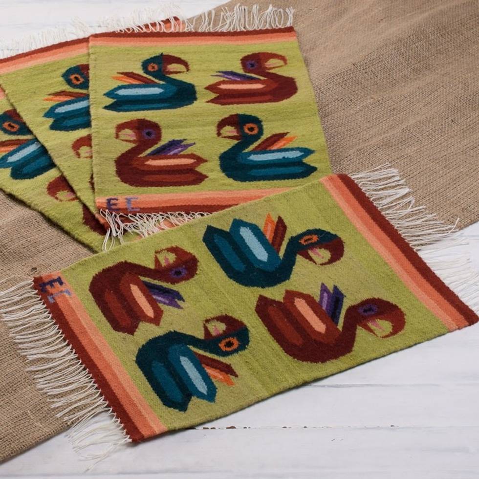 Parrot-Themed Wool Placemats from Peru Set of 4 'Amazonian Parrots' Item ID: 2671690543