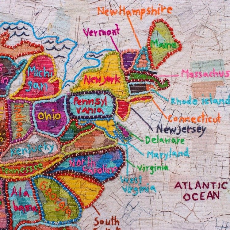 Patchwork Batik Map of US Wall Hanging 'USA' Item ID: 2671800149